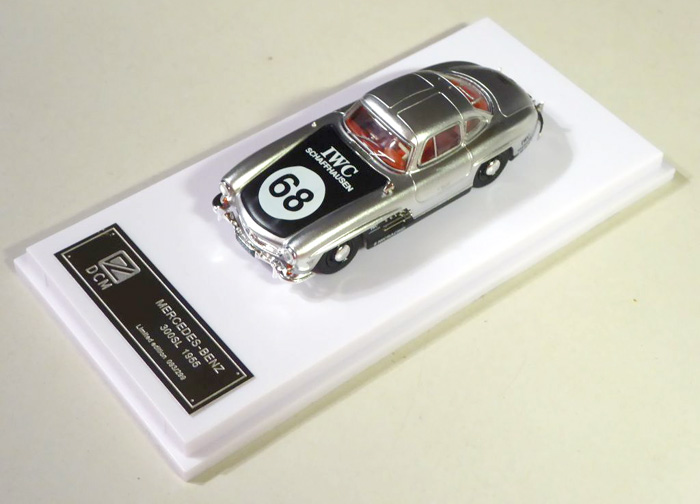 Pappschuber weiß in Plastikschachtel + kleines Pappschild mit Abbildung des Roadsters und Angaben zum Original |